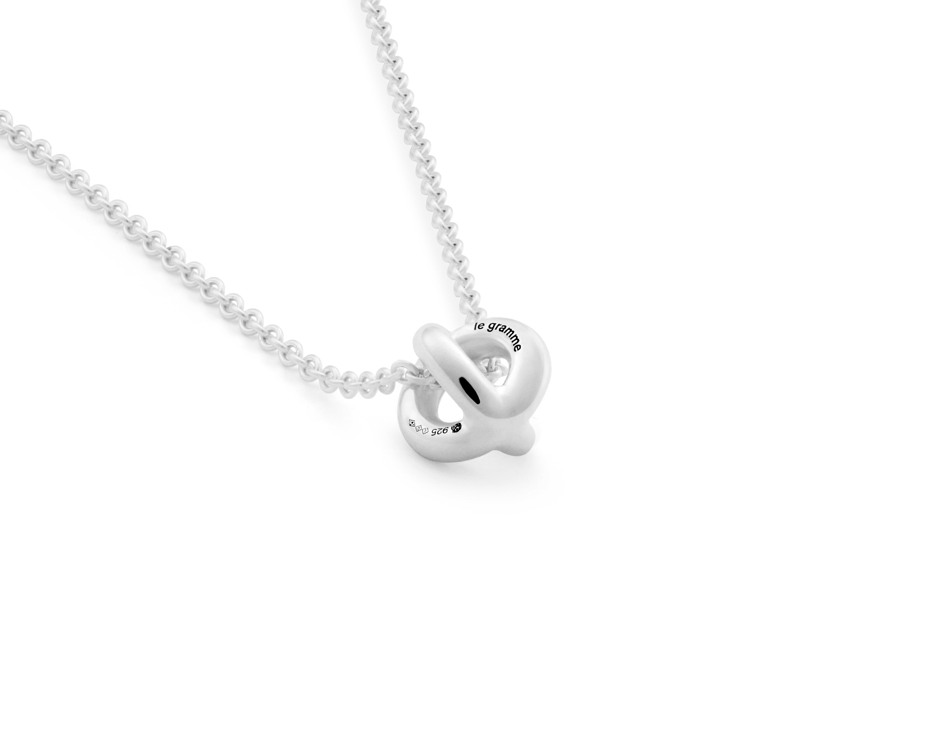 Carefully crafted from quality sterling silver, the Le Gramme 1g Polished Entrelacs necklace showcases a captivating entrelacs pattern. Offering an alluring visual effect, the interlocking loops symbolise unity, harmony, and the eternal nature of human connections. With a polished finish, it exudes a radiant glow that catches the light with every movement. Lightweight and comfortable, the necklace weighs only 3 grams.
