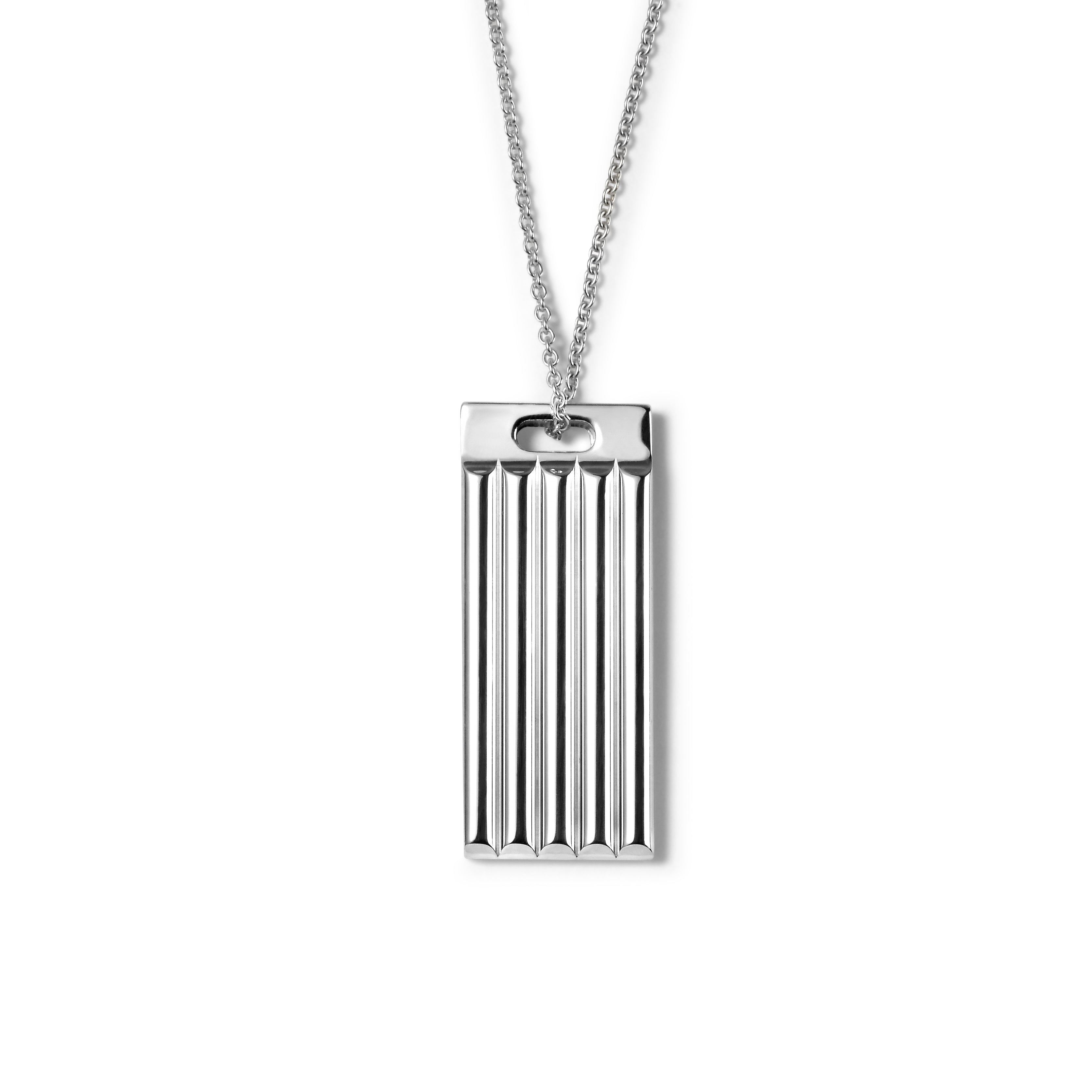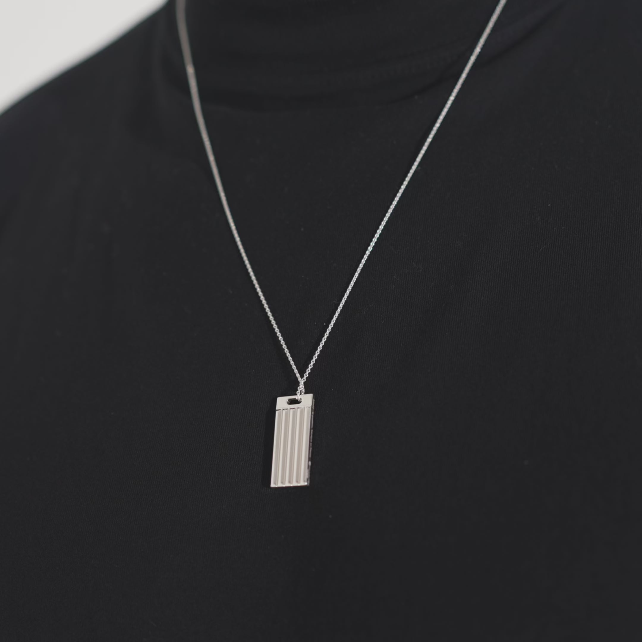 Elevate your look with Le Gramme's refined 8g Polished Sterling Silver Godron Necklace. This elegant piece showcases the brand's dedication to craftsmanship and minimalist design. Made from high-quality sterling silver, the necklace features a sleek rectangular pendant with a distinctive ribbed godron pattern on one side, giving it a unique, sophisticated texture. The other side is smooth and subtly engraved with "le gramme" alongside the weight marking, emphasising its authenticity and artisanal precision.