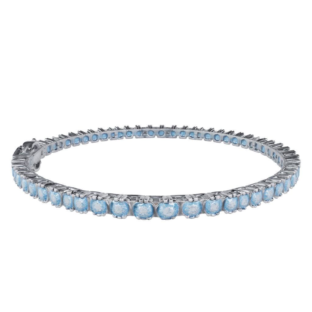 Designed for those who appreciate the allure of simplicity paired with the luxury of premium material, Hatton Labs' Classic Tennis Bracelet features a seamless row of exquisitely set stones that capture and reflect light, promising to add a touch of sparkle to your every gesture. The bracelet is meticulously crafted from the finest sterling silver, offering a lustrous foundation for the stunning array of hand-set, radiant blue stones that encircle the wrist with a mesmerising sparkle.