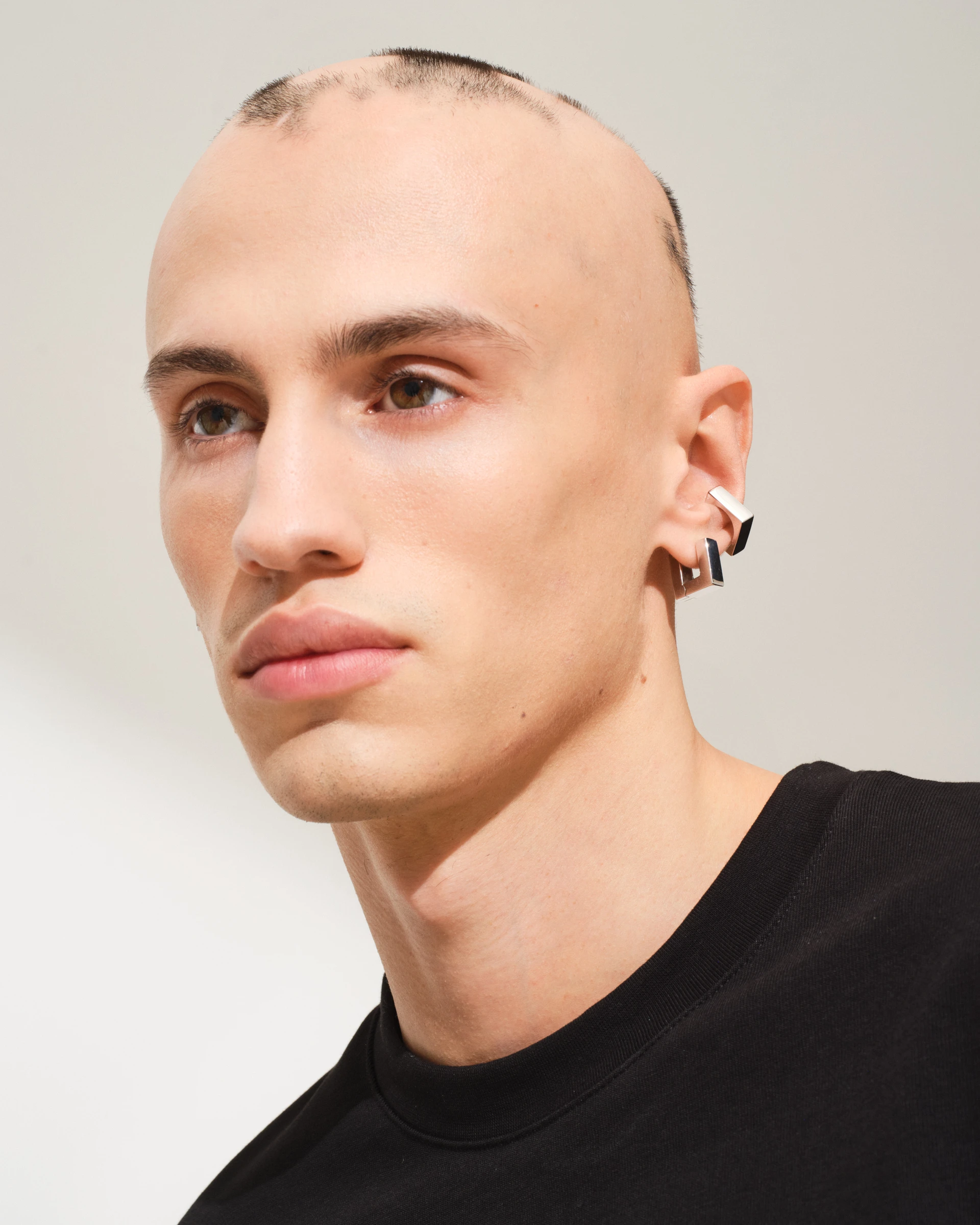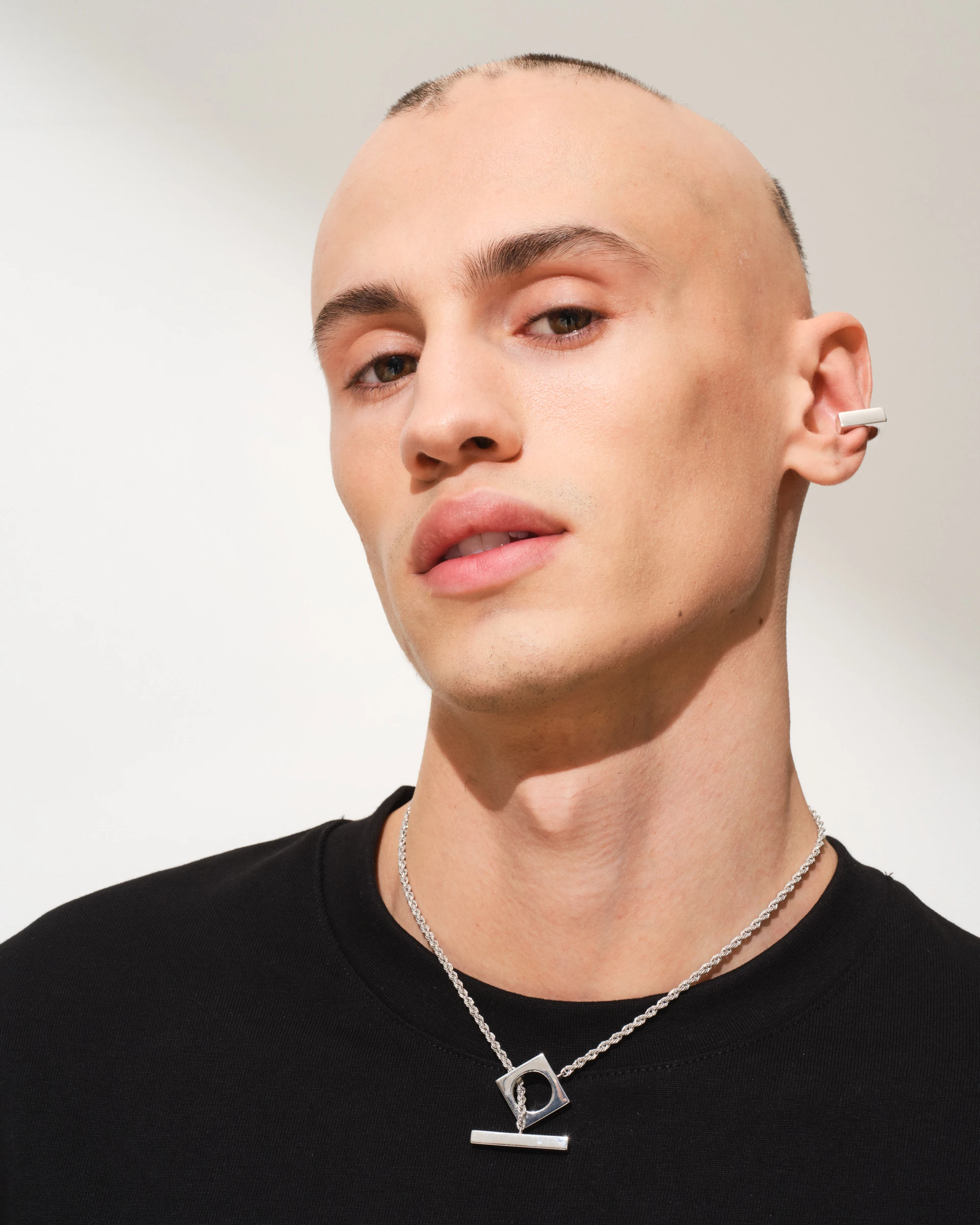 Elevate your style with the Tom Wood Square Ear Cuff, a modern accessory that combines minimalism with a bold, architectural design. Part of the brand's brutalist Square Collection, this ear cuff is meticulously crafted from sterling silver, offering a polished yet understated shine.